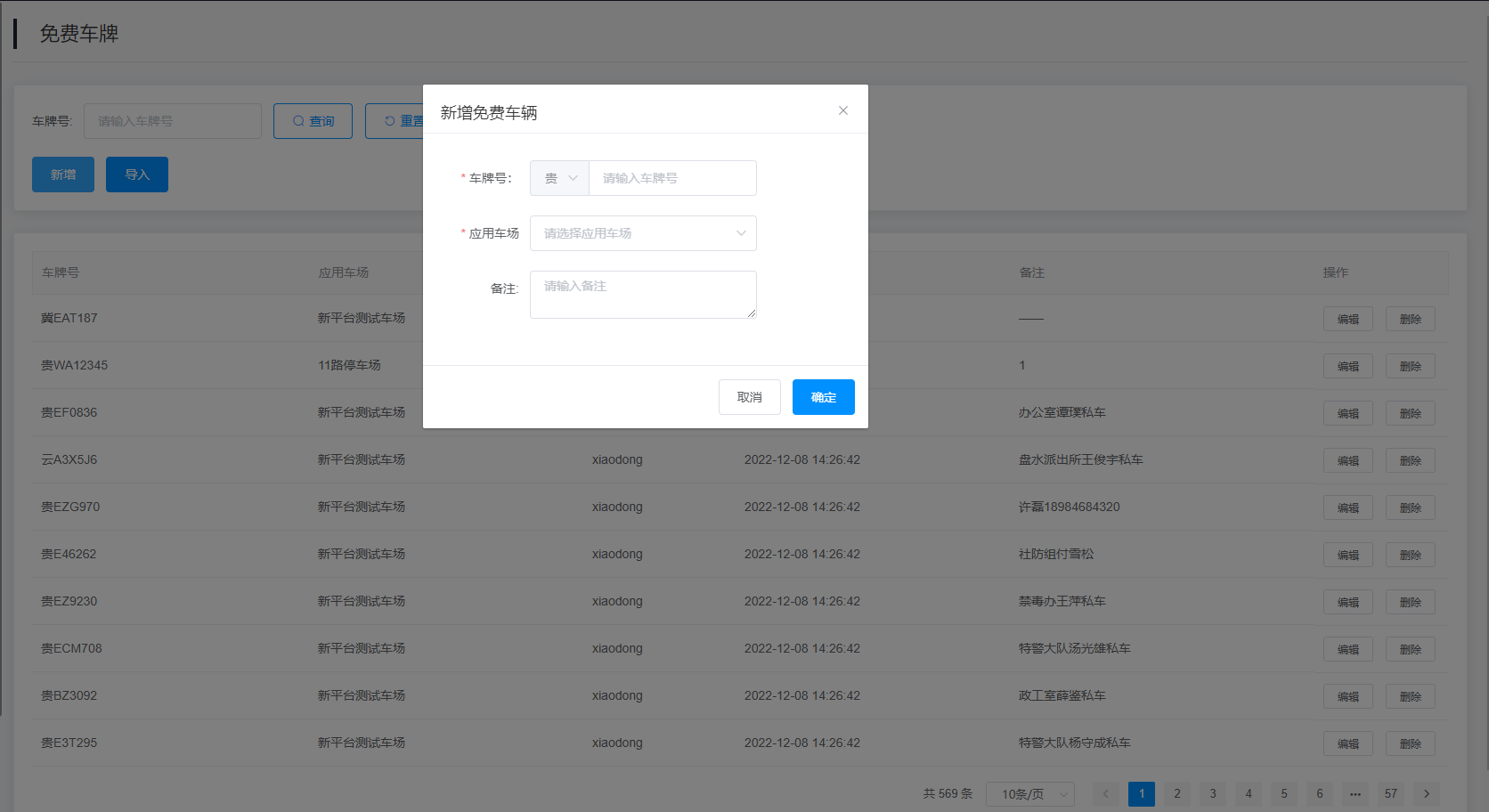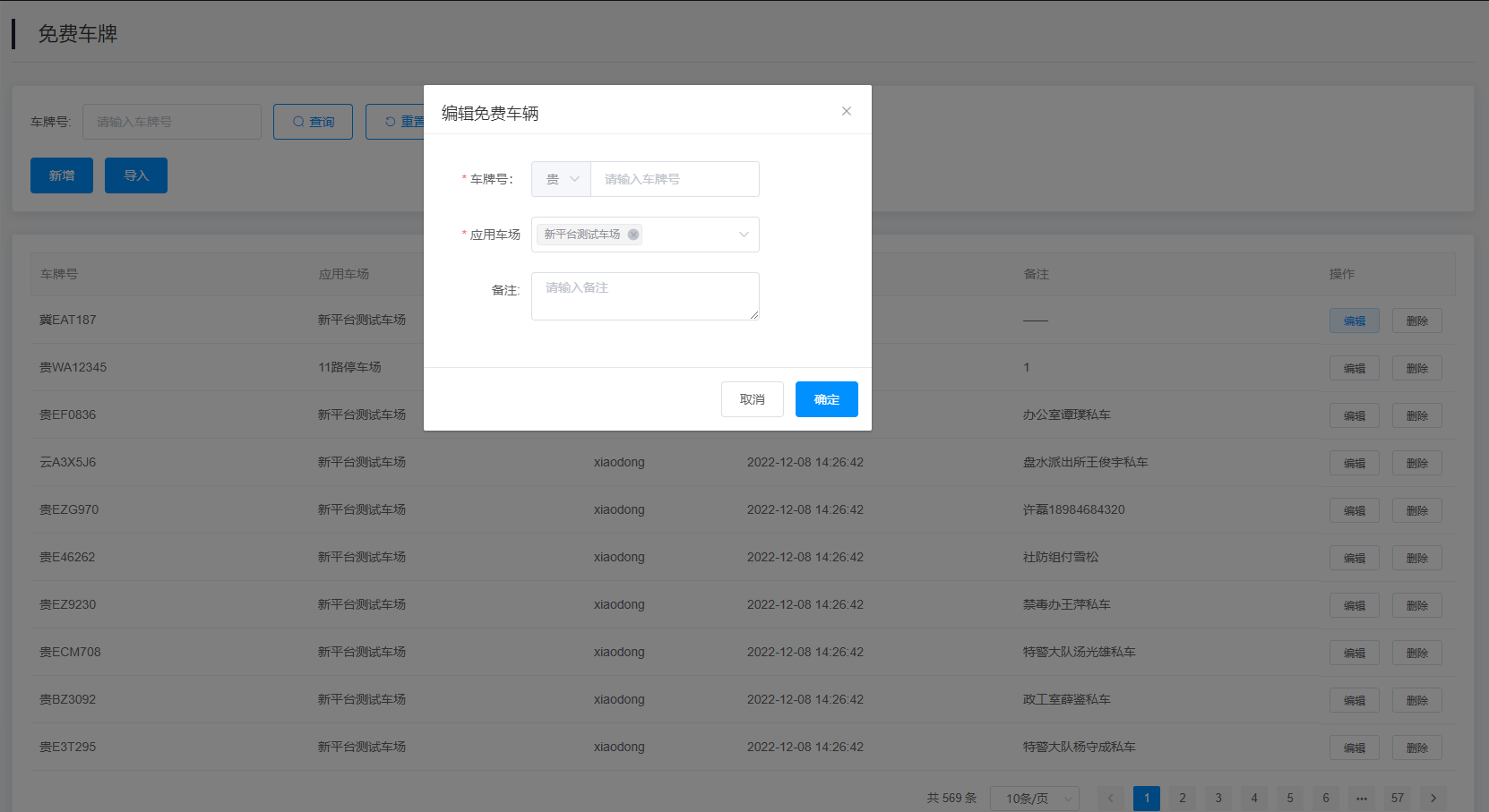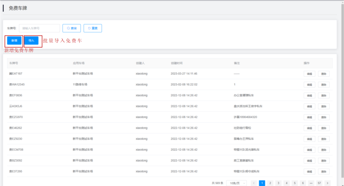 可以在免费车牌上查询、筛选、编辑、删除到所有免费车牌详情。