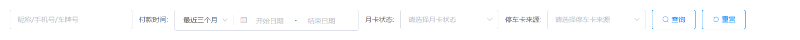 付款时间:通过选择付款时间筛选月卡车牌信息;