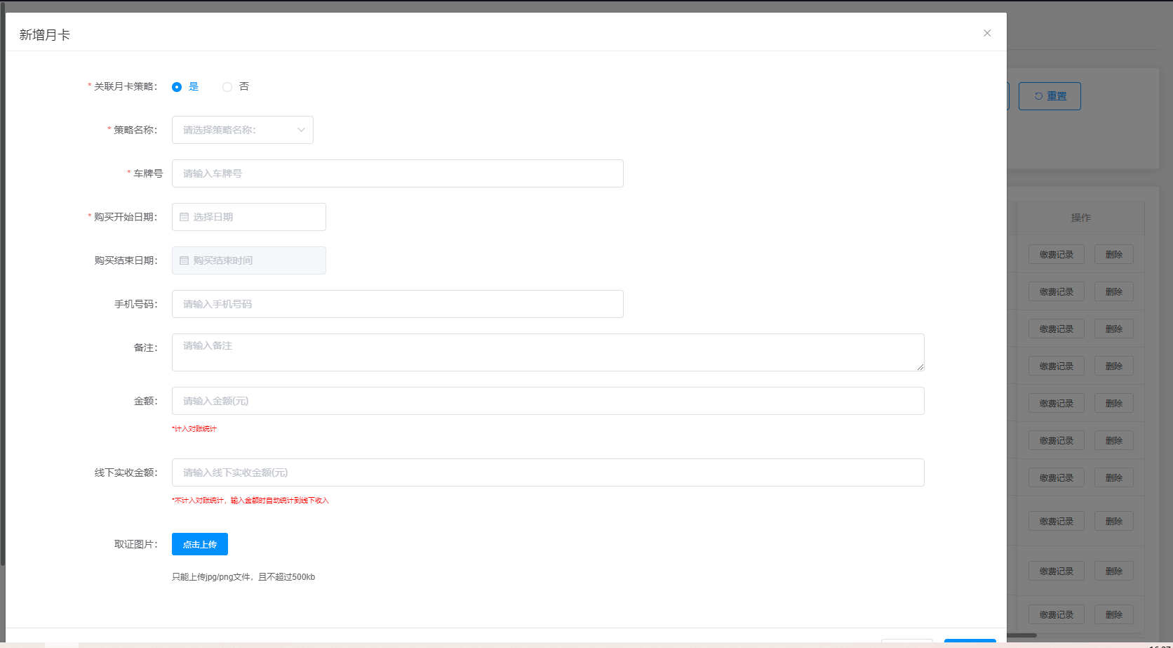昵称/手机号/车牌号:通过搜索用户昵称/手机号/车牌号查找月卡车牌信息;
