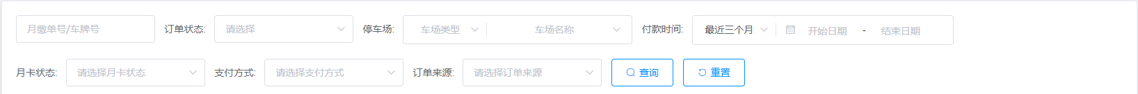 月缴单号/车牌号:通过搜索月缴单号/车牌号查找月卡订单信息;