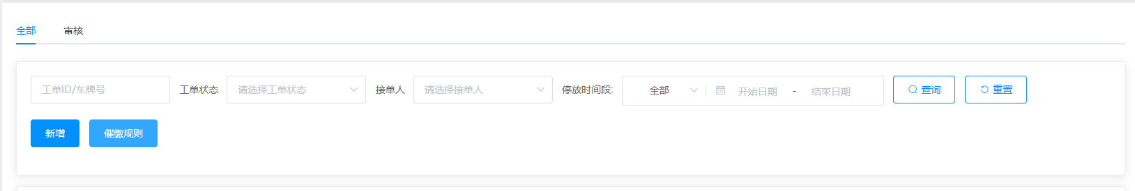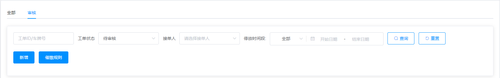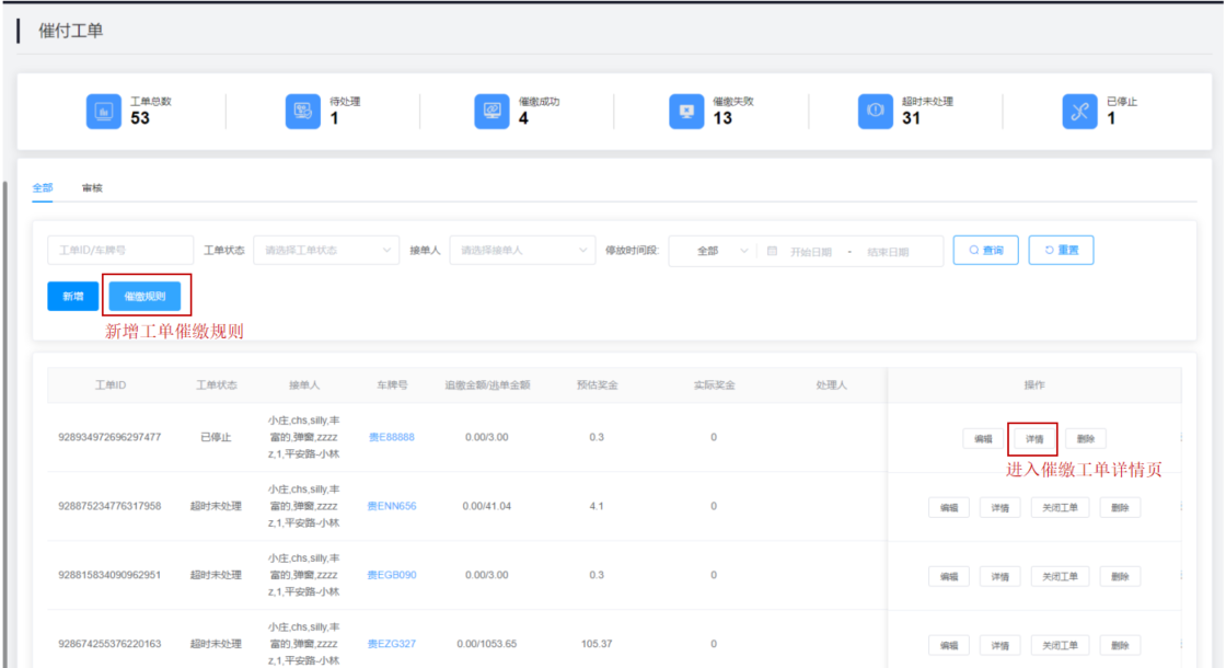工单ID/车牌号:通过搜索工单ID/车牌号查找催付工单信息;