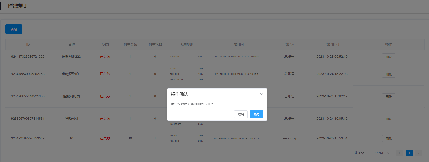 在催缴规则右侧点击“删除”即可确定是否执行规则删除操作。