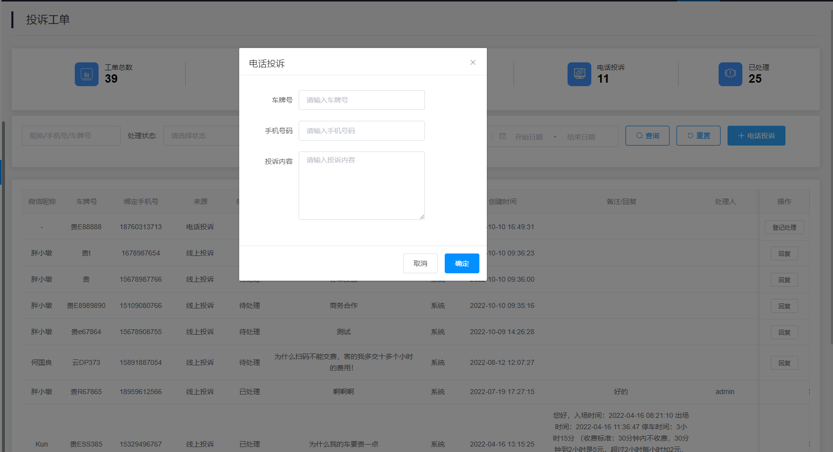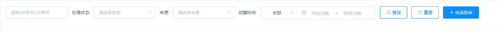 昵称/手机号/车牌号:通过搜索昵称/手机号/车牌号查找投诉工单信息;