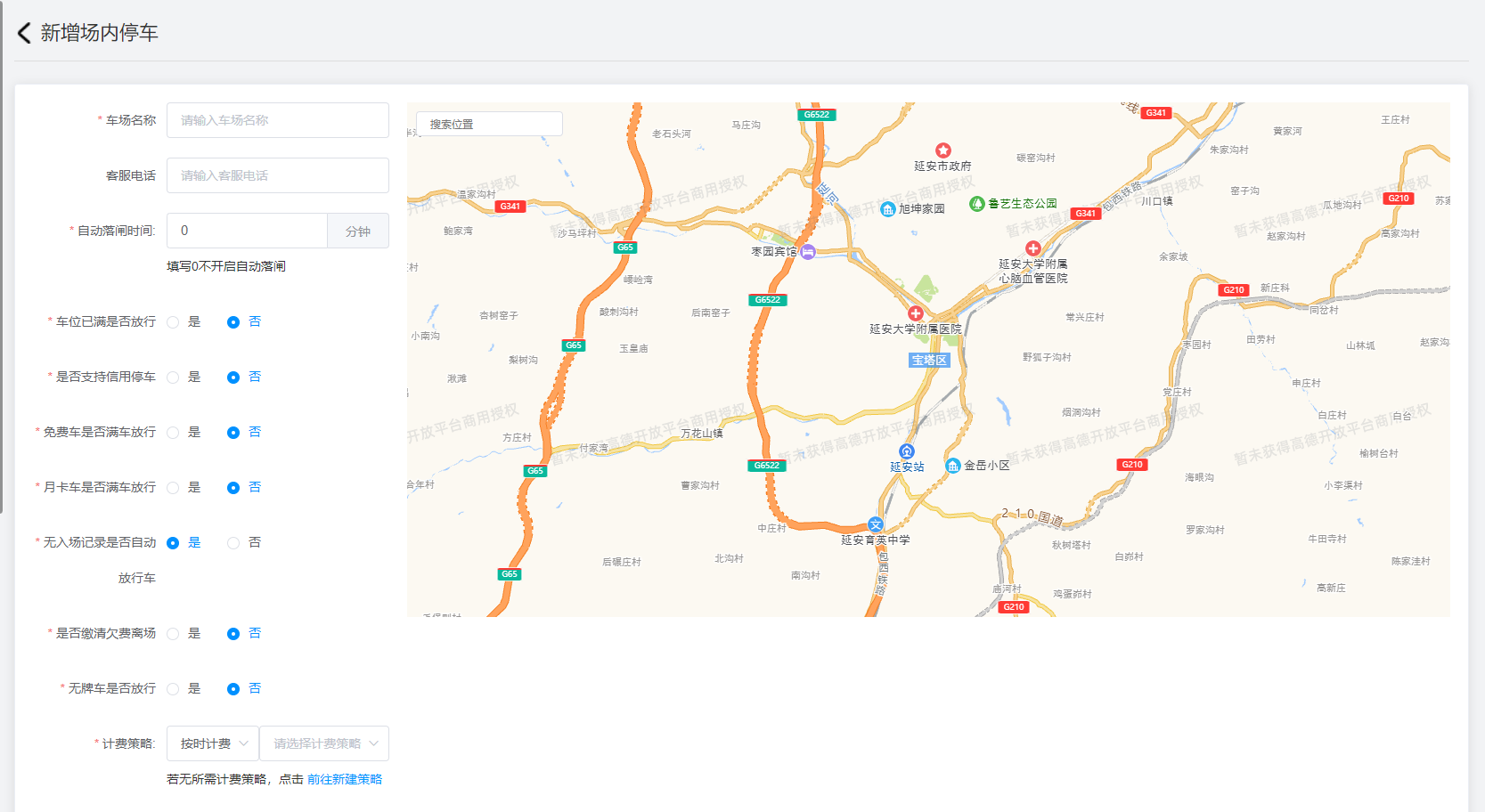 车场名称/计费策略名称:通过搜索车场名称/计费策略名称查找车场信息。