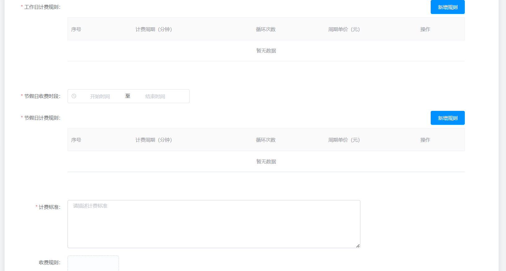 编辑:点击查询结果右侧的“编辑”按钮可以重新编辑该临停策略的名称、计费标准、收费规则。