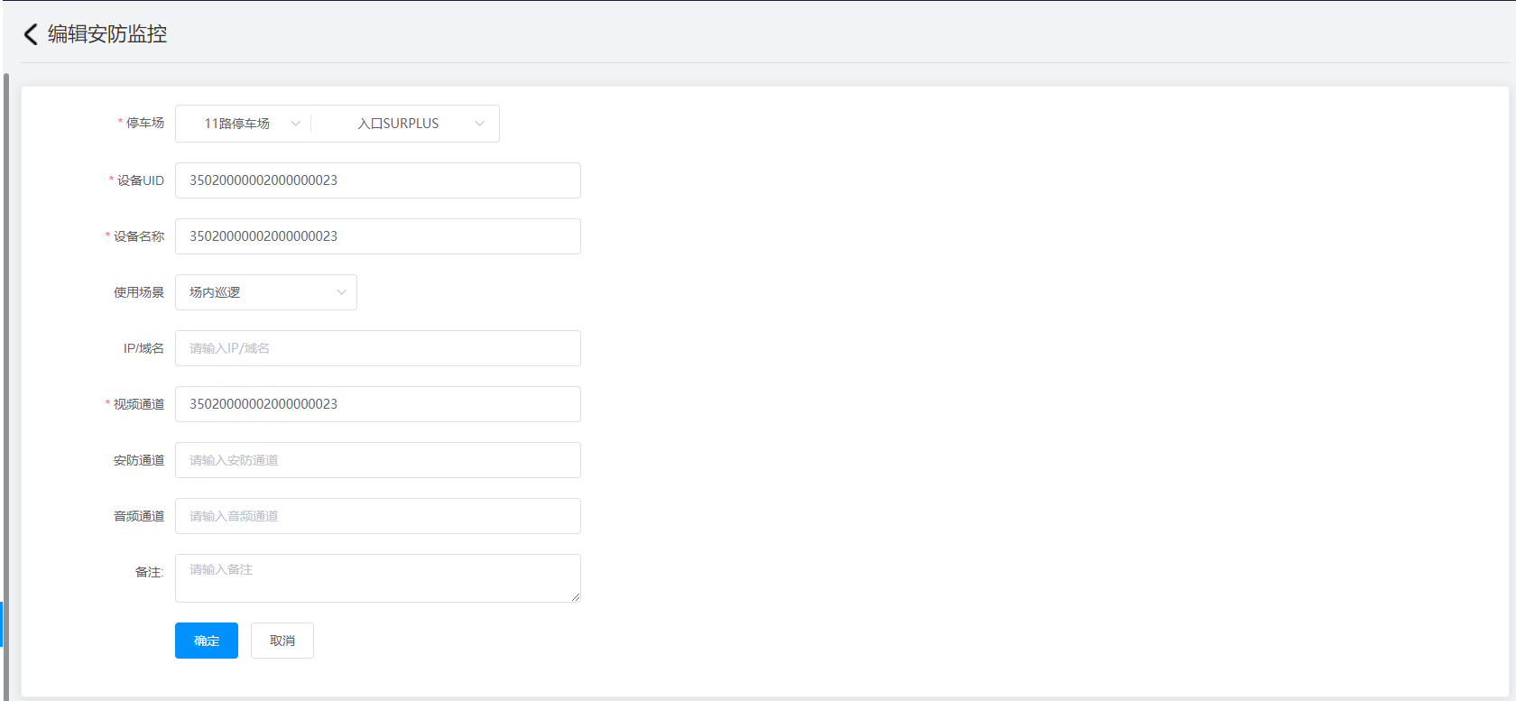 编辑:点击查询结果右侧的“编辑”按钮可以重新编辑设置该安防监控信息。
