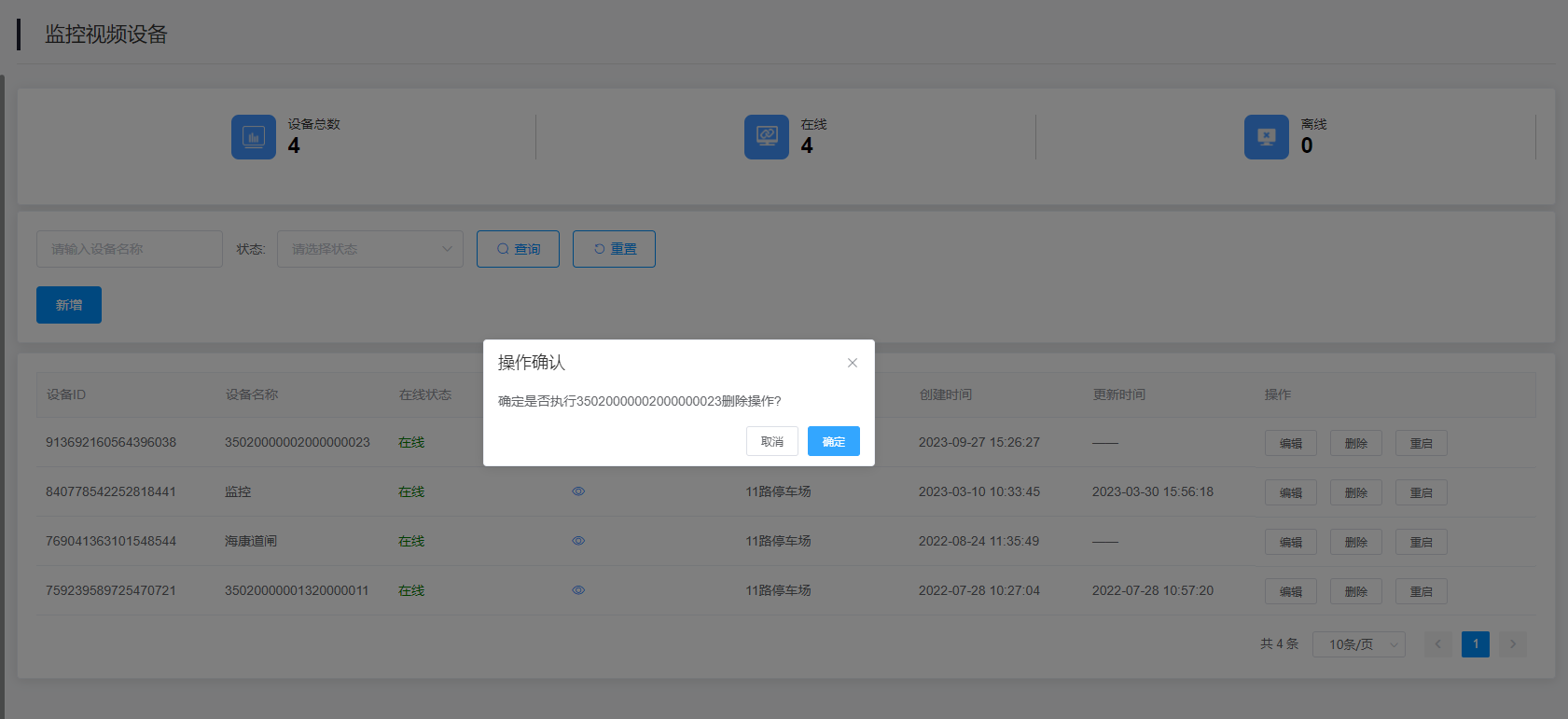 可以在监控视频设备上查询、筛选、编辑监控视频设备信息。