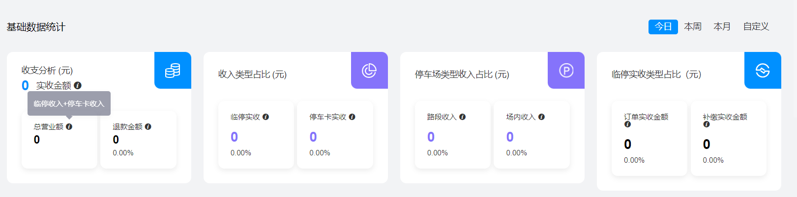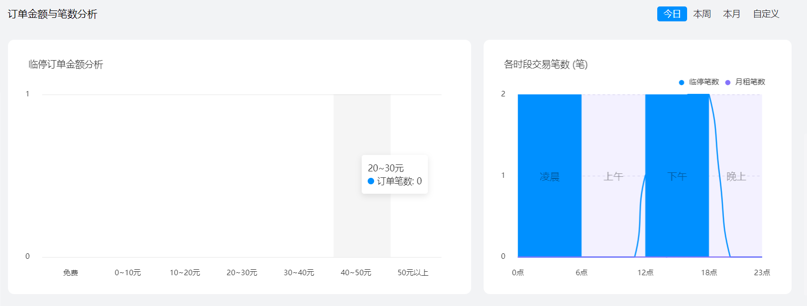 在每一个数据分析的右上角可以根据今日/本周/本月/自定义进行分日期查看数据分析。