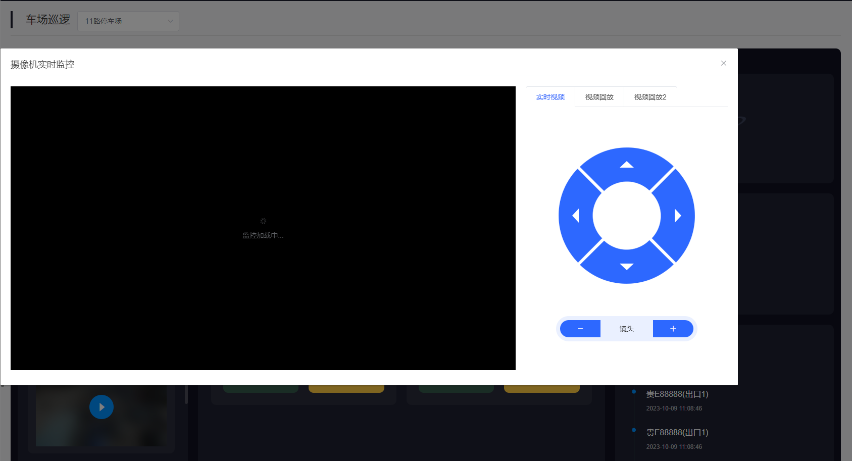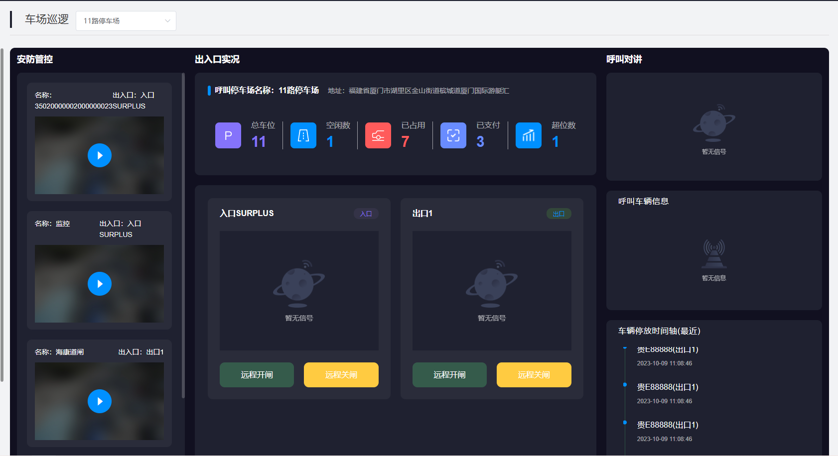 可以在车场巡逻上查看到车场的监控数据实况并远程开关闸。