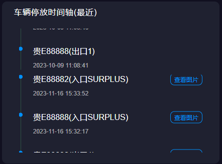 4.车辆停放时间轴:该车辆停放时间轴可以滚动最近车辆进出时间,点击“查看图片”可以查看该车辆进出的图片。