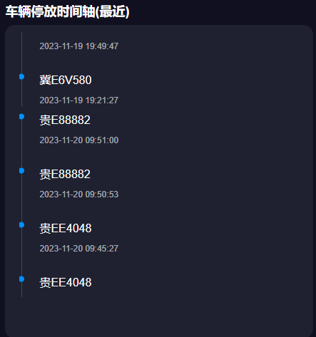 5.车辆停放时间轴:该车辆停放时间轴可以滚动最近车辆进出时间。
