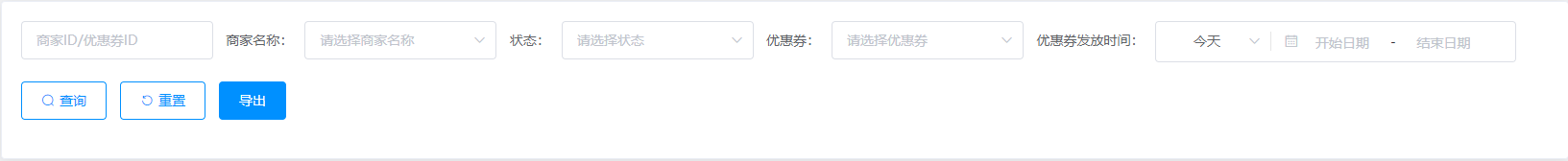 商家ID/优惠券ID:通过搜索商家ID/优惠券ID查找商家优惠券统计信息;