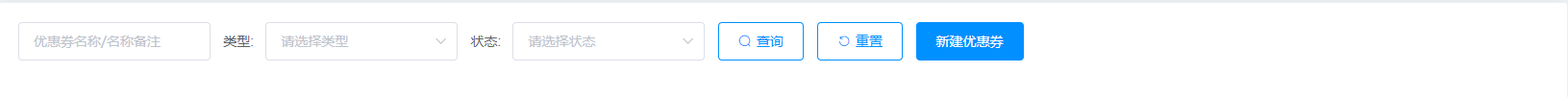 优惠券名称/名称备注:通过搜索优惠券名称/名称备注查找优惠券规则信息;