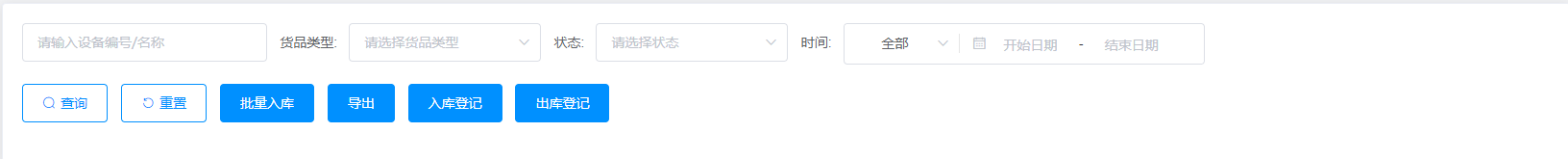 货品类型:可通过选择其中任一状态进行在库设备信息筛查;